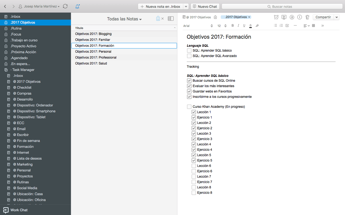 Me gusta separar las listas de objetivos por áreas de enfoque