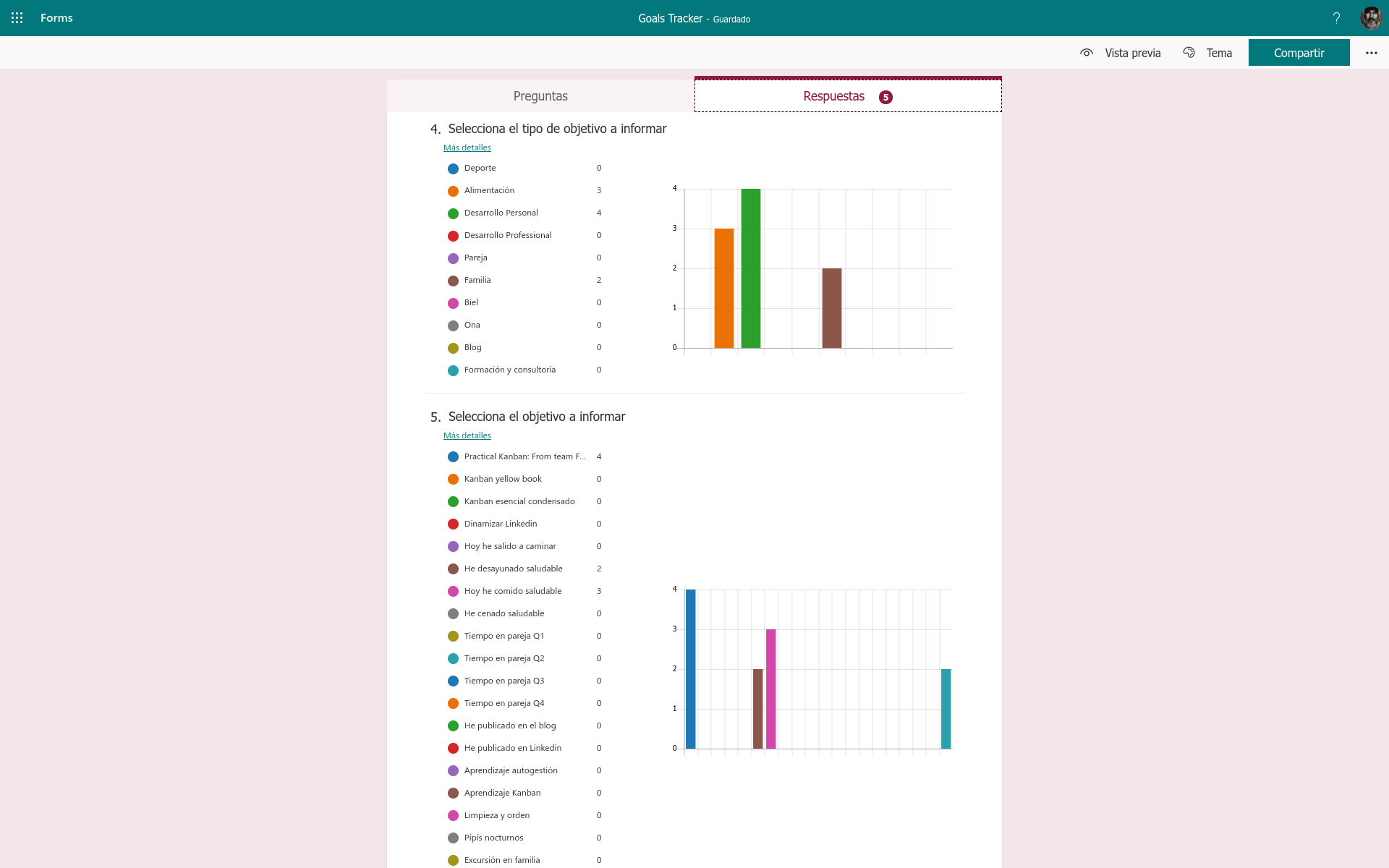 Este año he montado mi sistema de seguimiento de metas y objetivos en Formularios de Microsoft Office 365, lo he hecho en esta plataforma porque como te he contado alguna vez, soy usuario hardcore de Office 365 y tengo montado todo mi sistema en esta plataforma, no obstante, también puedes montar tu sistema en Formularios de Google, el funcionamiento es exactamente el mismo, y el resultado también, además de ser gratis.