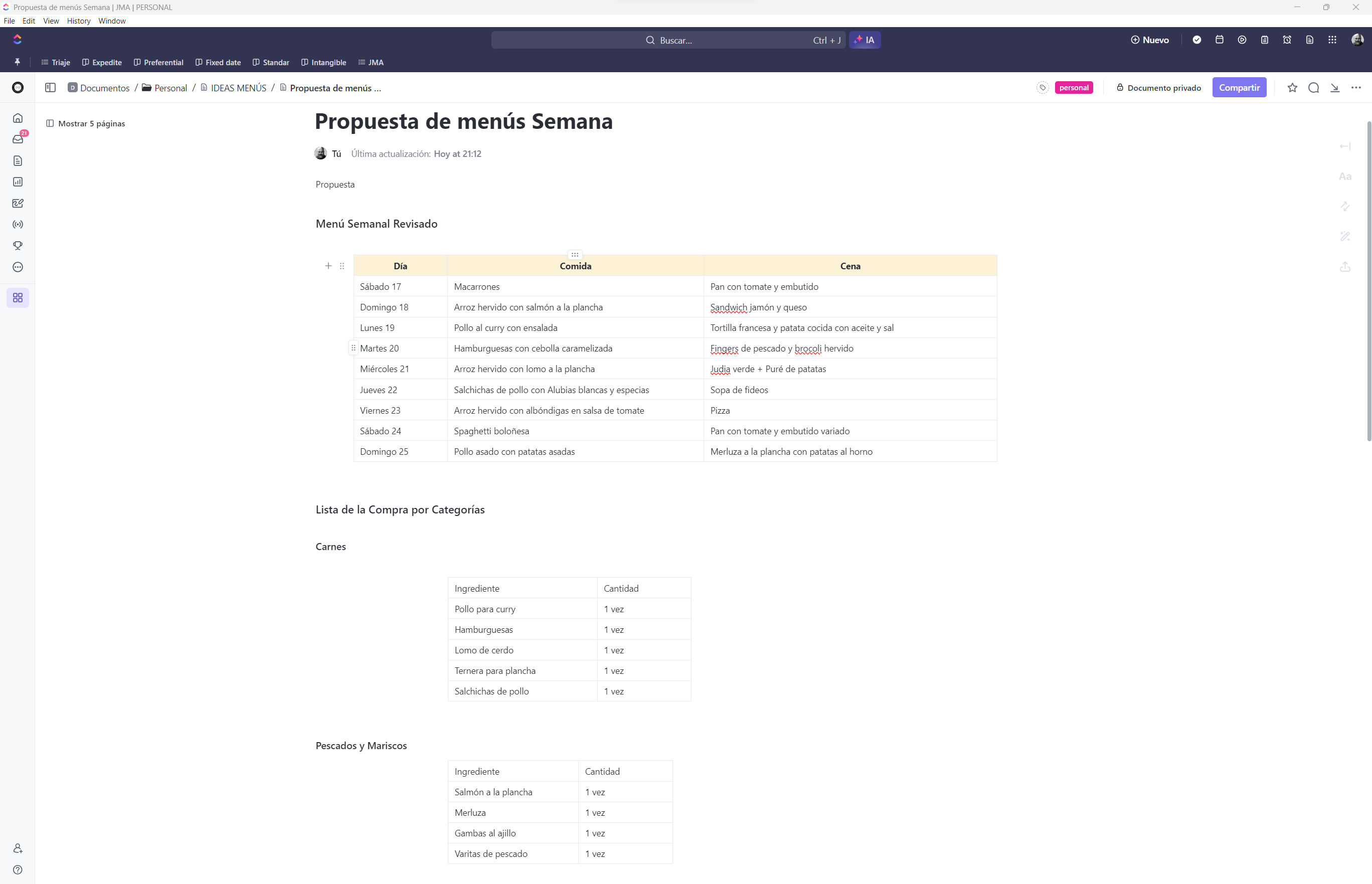 Planificación de Menús Semanales con ClickUp Brain