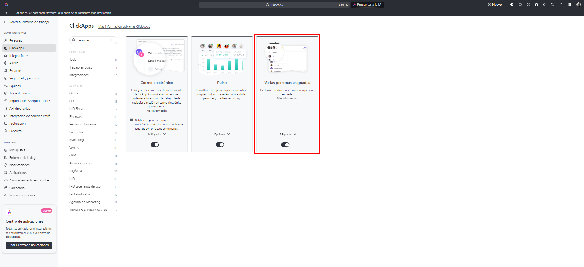 - En la pantalla de los ClickApps, busca el que llamado «Varias personas asignadas»