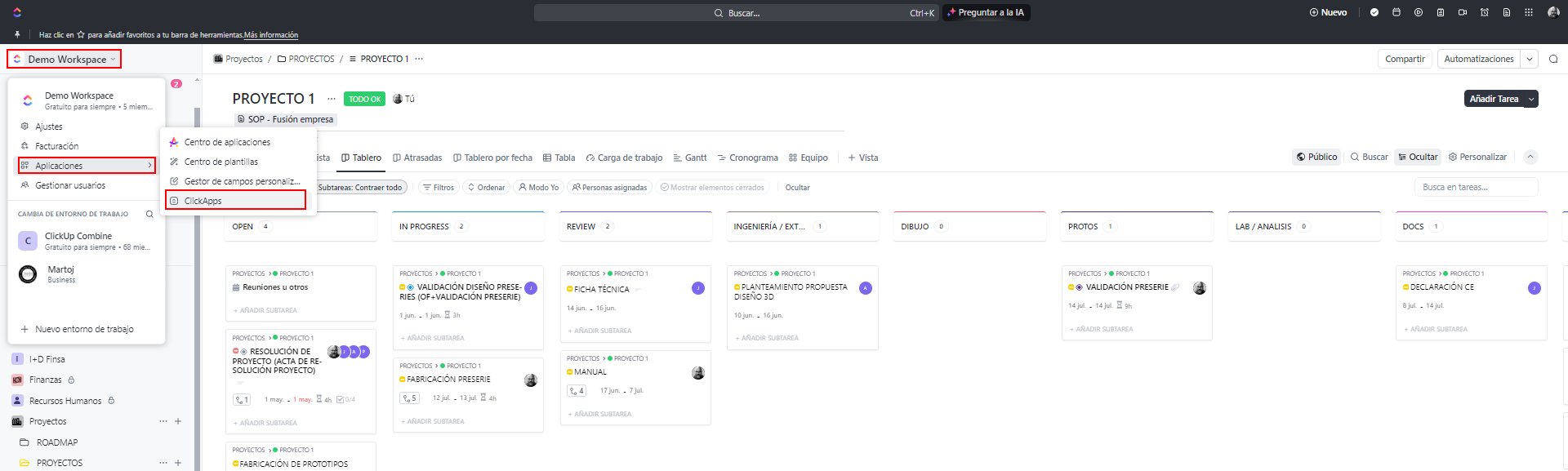 Para poder asignar varias personas a una misma tarea previamente deberemos activar un ClickApp en la configuración, si no, no podremos asignar varias personas a una misma tarea.